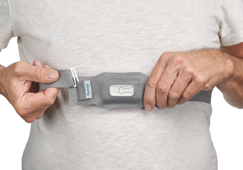 Befestigen Sie das Gerät am Gürtel und legen Sie ihn um Ihre Brust. Der Gürtel ist leicht verstellbar. Das atmungsaktive Material verhindert Schwitzen: ideal, wenn Ihnen im Bett schnell warm wird.