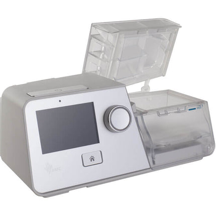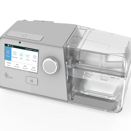 Le BMC G3 B30VT est livré en standard avec un humidificateur, un tuyau, une alimentation électrique, des filtres et un sac de transport. Un support de cordon d’alimentation est également inclus. Grâce à cette pièce, le cordon d’alimentation reste toujours connecté à la machine. Un tuyau chauffant, un kit SpO2 et un filtre PM2.5 sont disponibles en option (dans notre boutique en ligne). Il est possible de préchauffer l’humidificateur. En option, vous pouvez activer un « rappel » sur l’appareil pour remplacer les accessoires (le filtre, par exemple).