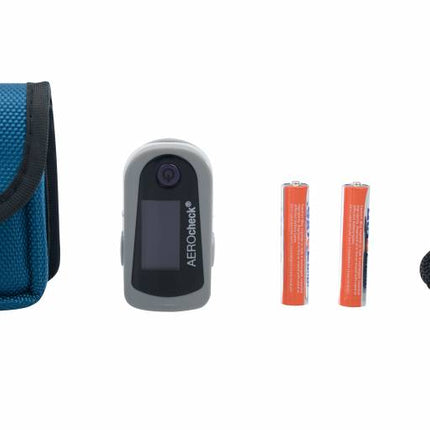 Le saturomètre, petit et léger, est livré dans une sacoche qui le rend encore plus facile à emporter avec soi. L'oxymètre de pouls HUM AEROcheck est capable de fonctionner environ 30 heures en continu. Lorsque la batterie de l'oxymètre de pouls est faible, cela donnera une alarme de batterie faible.