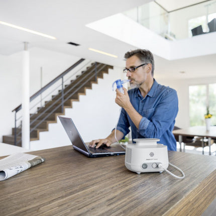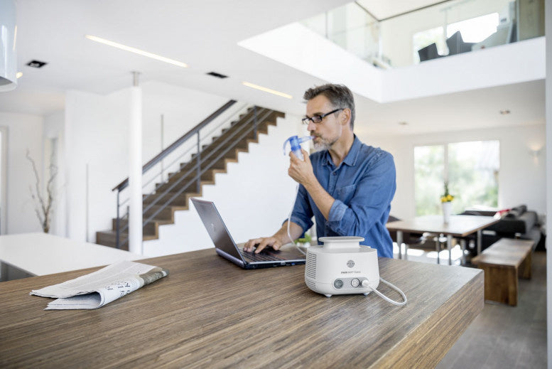 Simplifiez-vous la vie et découvrez le PARI BOY Classic, un nébuliseur à compresseur fiable. Ce compresseur génère de l’air comprimé qui passe à travers les médicaments à nébuliser ou la solution saline. Un aérosol se produit ensuite : un ensemble de minuscules gouttelettes que vous inhalez avec l’aide de l’embout buccal ou du masque fourni. Le compresseur puissant réduit la durée des séances considérablement et vous offre de la sorte un temps d’inhalation court. Le PARI BOY Classic dépose des substances médicamenteuses ou de la solution saline sur les poumons, directement et efficacement. Souhaitez-vous nébuliser des doses élevées ? Le PARI BOY Classic est prêt à vous aider !