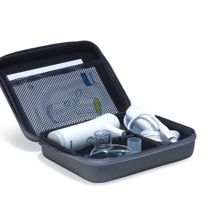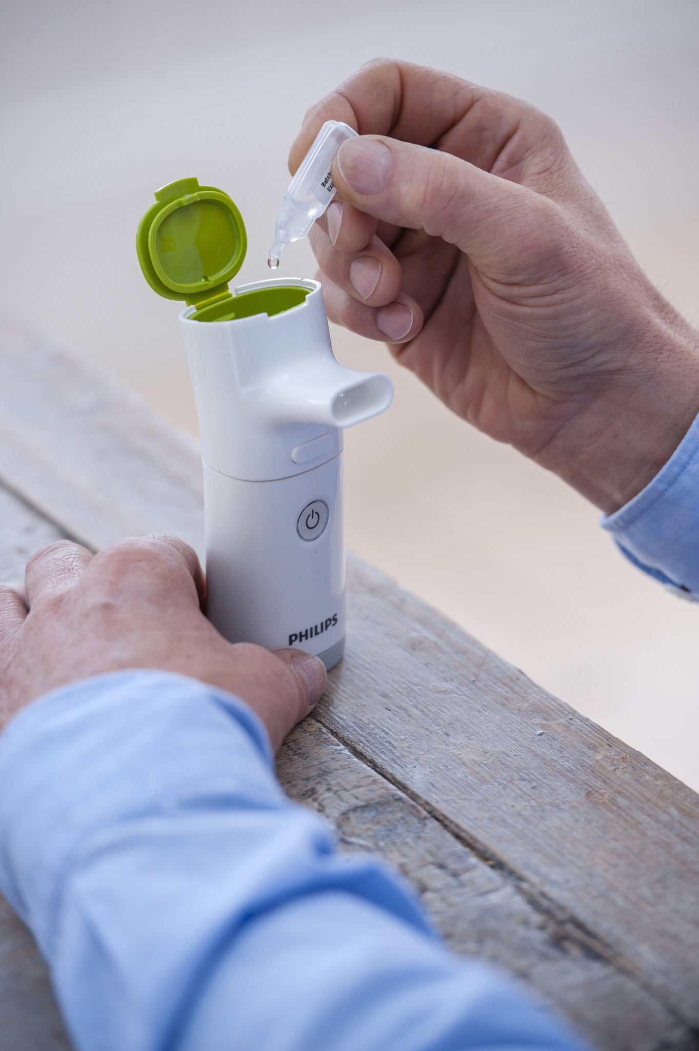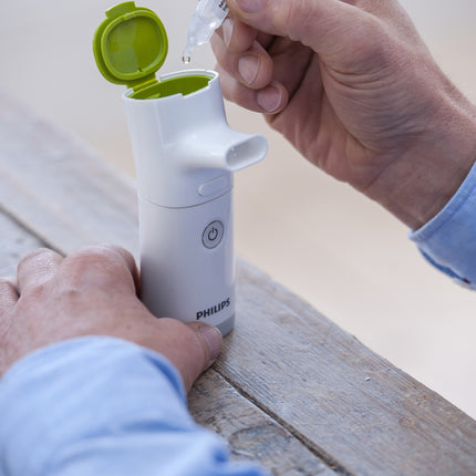 Le Philips InnoSpire Go vous permet de faire un aérosol rapide et efficace avec vos médicaments ou votre solution saline. Peu importe où vous êtes : ce nébuliseur portable est heureux de vous aider ! L’appareil réduit considérablement la durée des séances. Idéal pour consacrer plus de temps à vous-même et à votre famille. L'InnoSpire Go est hyper compact et léger. Emportez-le avec vous dans la mallette de transport de luxe (en toute sécurité). Il s’agit d’un nébuliseur à tamis qui génère une fine brume. Il est déconseillé d’y insérer des liquides épais en raison du risque d’obstruction. Consultez votre médecin traitant pour vérifier s’il est possible d'inhaler vos médicaments avec un nébuliseur à tamis.