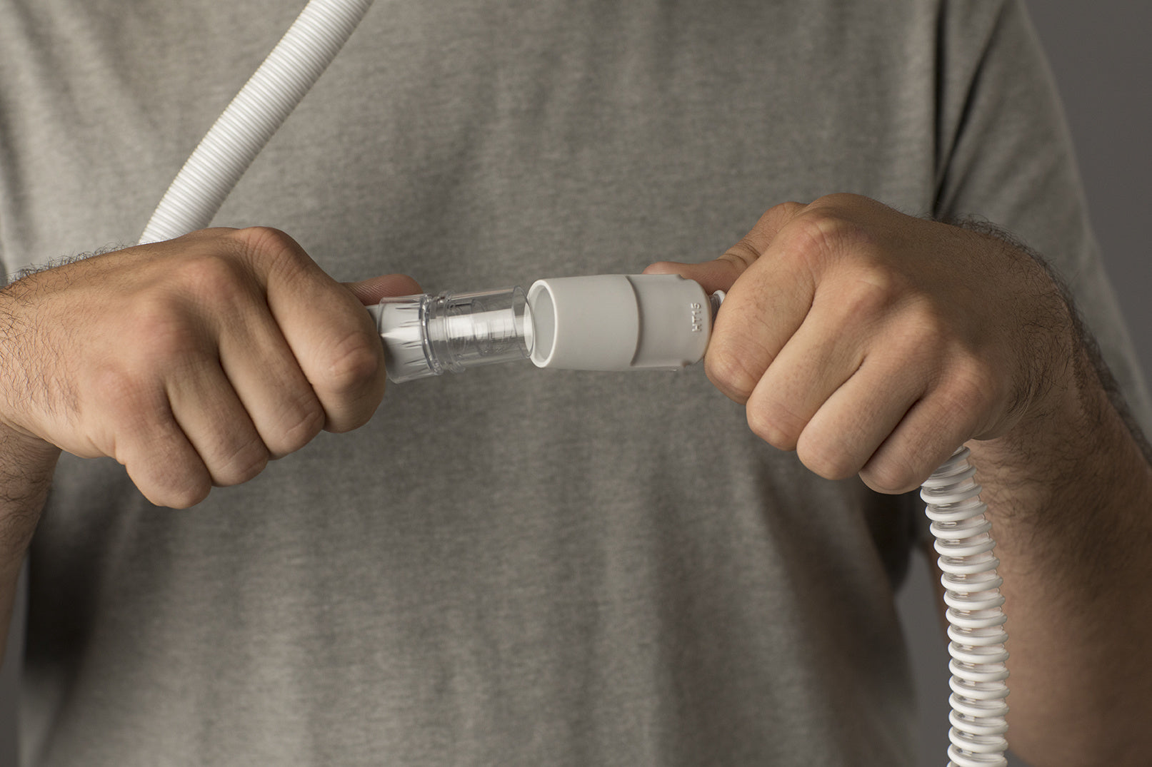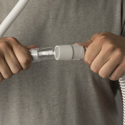 Il est facile de connecter les sangles en tissu au harnais, grâce aux clips magnétiques. Le coussin se clique dans le harnais. Le raccord pratique vous permet de relier le tuyau PPC au masque : idéal si vous allez aux toilettes durant la nuit. Vous pouvez facilement démonter les différentes pièces. Il est recommandé de nettoyer régulièrement le masque PPC.
