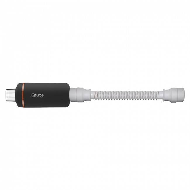 Le Qtube est un accessoire réutilisable pour patient unique, conçu pour réduire le bruit acoustique qui peut être transmis au masque du patient par le biais du circuit de la PPC